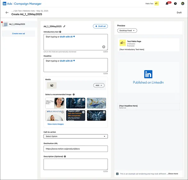 “Draft with AI draws from ads already in your media library, Shutterstock visuals and LinkedIn’s generative AI (GAI) to quickly create ad headlines, draft intro text and suggest images in seconds. And the output is editable, so you can capitalize on scale without losing your creative expression. In short, you can produce a lot more ads with a lot less effort.”