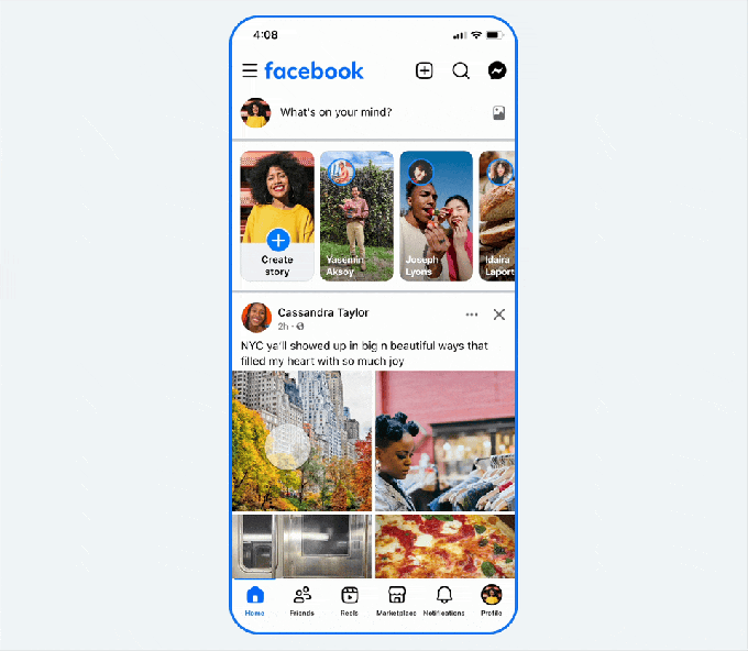 In addition, Facebook says it’s making it easier to create Stories and regular posts by making tools for adding music or tagging friends more visible, and eliminating other distractions. Audience and cross-posting settings will now be more prominently displayed as well.
