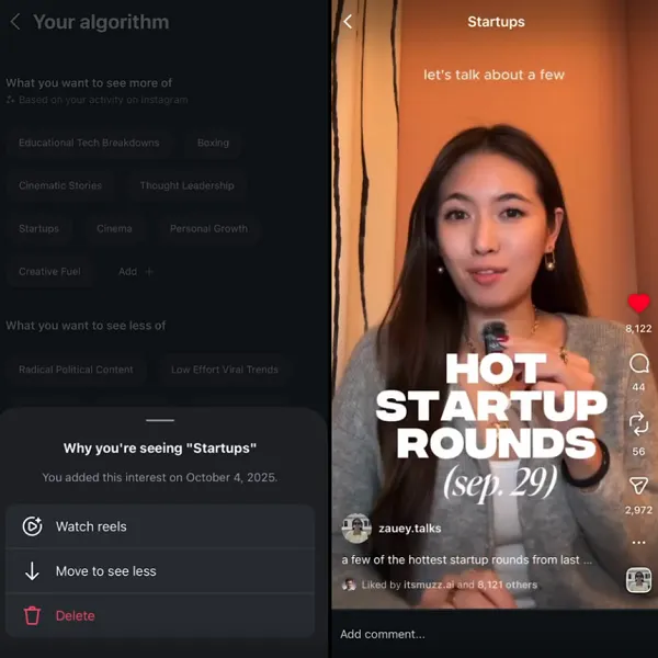 “We’re launching the ‘your algorithm’ tool on Reels today in the U.S. and will roll out soon to all English-speaking users — a big step towards a more controllable experience. We’ve done a bunch of work on the tech under the hood and we will continue to refine these tools, but already it’s quite powerful to steer your recommendations towards your specific interests.”
