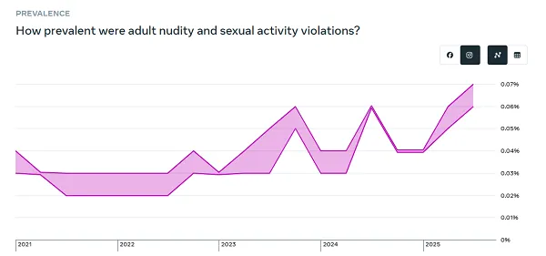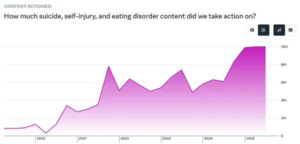 So while Meta might well be making fewer mistakes in over-enforcement, and penalizing users incorrectly, which is in line with the more "freedom of speech" style approach that Zuck and Co. are aiming for, the trade-off is that more people across its apps are being exposed to more potentially harmful content as a result. Which, based on the declining charts above, Meta's systems could detect and remove, but instead, it's opting to let more through, and it's selling this as a positive, because people aren't being restricted as much.