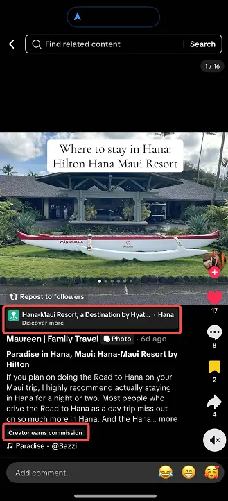 Your TikTok post will include the relevant location info, along with a note to indicate that the creator is earning commissions from the post for transparency.
