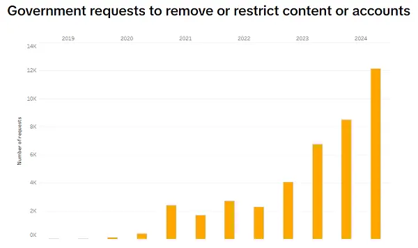 It’s also notable that TikTok is seeing more removal government requests from various regions over time.