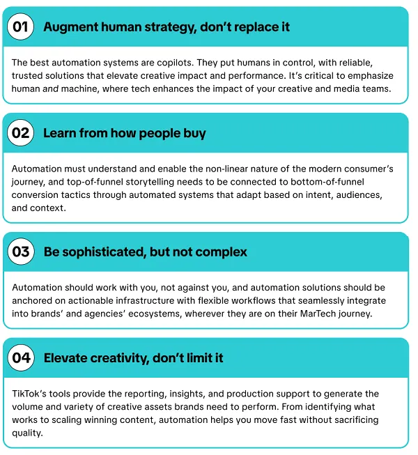 To address this, TikTok has partnered with marketing agency Lunar Solar Group to put together a set of tips on how marketers can tap into the power of AI, with 8 key notes on AI integration within your marketing approach.