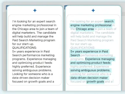 “Add a job description or intake notes and Advanced AI-Assisted Search will automatically identify the required and preferred qualifications to match your hiring intent. Even hard-to-define skills are understood and surfaced by the AI.”