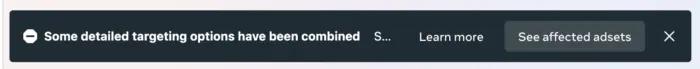 And now, it’s taking the next steps, with a new notification in Meta Ads Manager alerting advertisers of the removal/consolidation of more detailed targeting options.