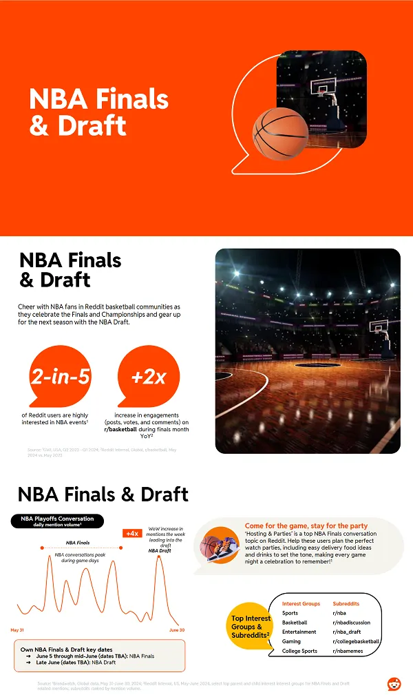And Reddit discussion could prove to be particularly valuable in this respect. According to Reddit, NBA-related discussion doubles in this period, as fans look to discuss the latest finals results, while also looking ahead to the future for their teams.