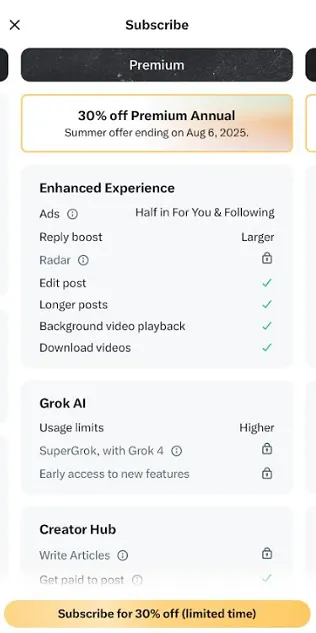 X Premium, meanwhile, is offering 30% off its annual subscriptions for its Premium and Premium Plus plans.