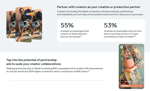 There are also tips on working with collaborators, and the benefits of partner promotions within Reels: