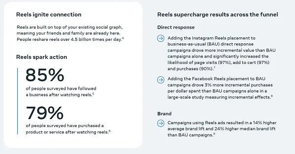 Meta’s updated Reels Ads Guide is a short, 6-page overview of Reels promotions best practices, including data on Reels ads performance: