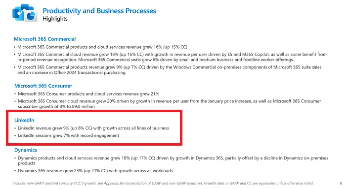 And every time, without fail, in literally every update on LinkedIn’s performance since 2018 (except one), in virtually every report since it acquired the platform, Microsoft has reported the exact same thing: