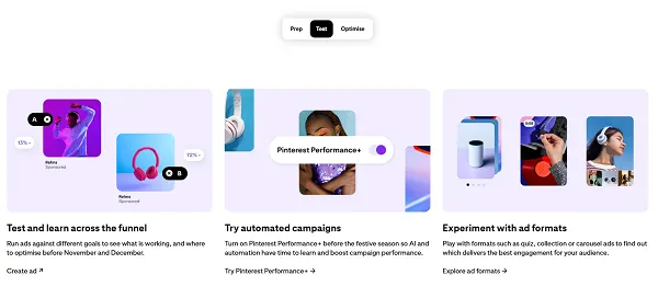 - Test – Which relates to trying out Pinterest’s evolving ad formats, including its AI-powered campaigns.