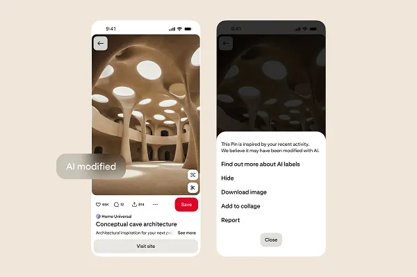 “Pinterest may display a label in the foreground of an image Pin when we detect that it has been generated or modified with AI. This is in accordance with IPTC standard for photo metadata. We’re working on ways to expand our capabilities to better identify GenAI content in the future through additional technologies.”