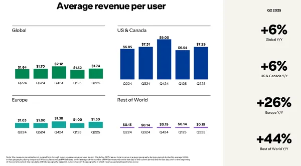 As you can see in this chart, all of Pinterest’s audience growth came in the “Rest of World” category, where it added 9 million extra users.