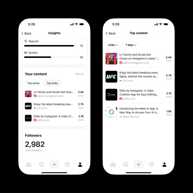 Instagram Threads is taking on Linktree and other “link-in-bio” solutions by introducing a way for creators to use their Threads profile to share links to their other interests and online presences. At launch, the feature will support adding up to five links to a bio, which can connect visitors to the creator’s blog, newsletter, website, or other social profiles, for example. In addition, creators will be able to access new tools to see how well those links perform.