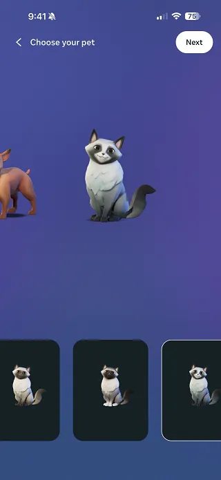 Through this process, you can create your own, custom virtual pet, with options to select the animal, color, fur patterns, etc.