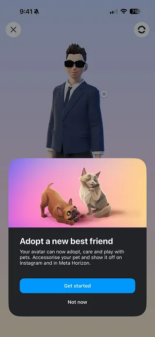 As you can see in these examples, posted by app researcher Jonah Manzano, some users are now being prompted to “Adopt a new best friend” for your Meta avatar, which you can show off on both IG and in Meta’s VR Horizon experience.