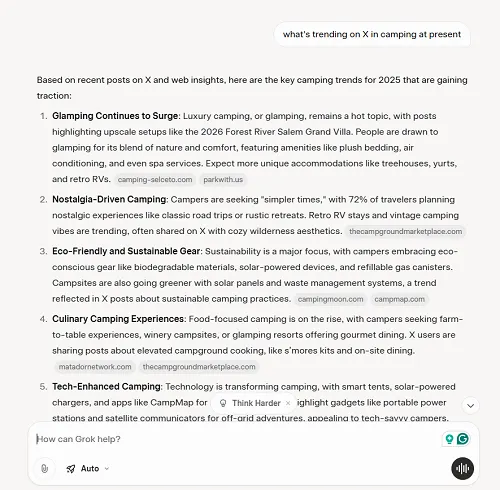 So if you already know your key subjects, you can ask Grok what’s trending in relation to those terms on X as well for additional trend insight. Just make sure you word your queries to be X specific, or hone in on specific elements.