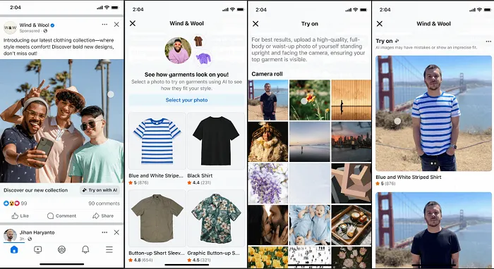 Meta’s also trying out new virtual try-on options, which will give people new ways to see what clothing items look like on them before they make a purchase.