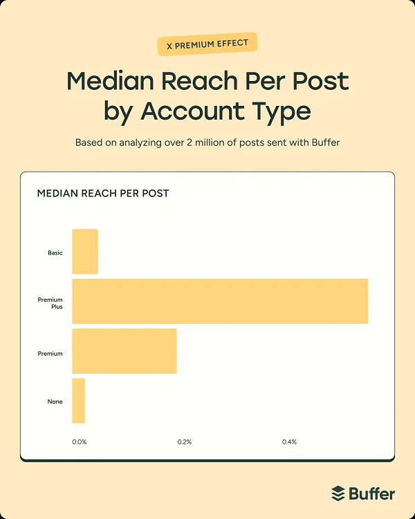 In terms of the different X Premium account tiers, Buffer’s data shows that paying more has a much bigger impact on reach.