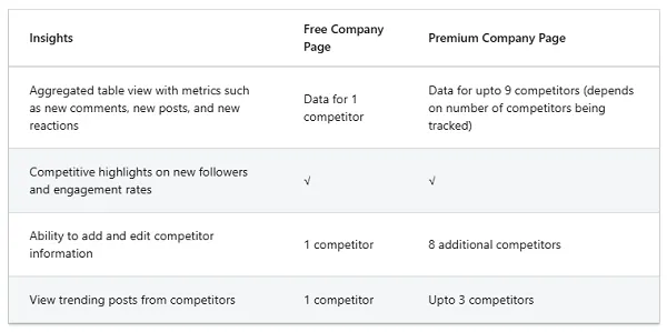 LinkedIn Premium Company Pages, for which you need to pay at least $99 per month, will have access to comparisons of nine competitor pages, while they’ll also be able to see the trending posts of three competitors.
