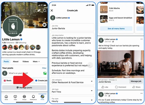 “If you’re an employer, you can create a job listing on Facebook through Marketplace, your Page, or the Meta Business Suite.”