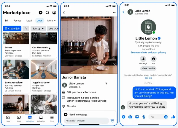 As you can see in this example, Facebook’s bringing back on-platform job listings, which will be available via the “Marketplace” tab, in order to help connect more people with open opportunities.