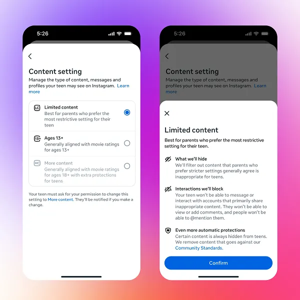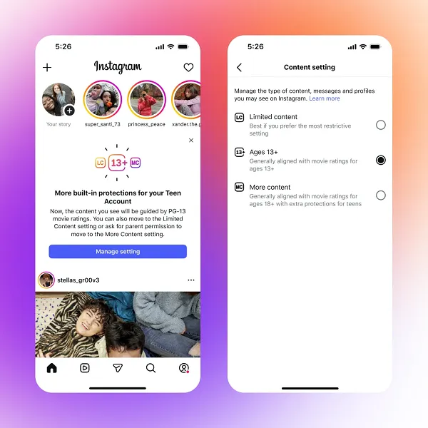 “Today, we’re announcing that Instagram Teen Accounts will be guided by PG-13 movie ratings by default. This means that teens will see content on Instagram that’s similar to what they’d see in a PG-13 movie. Teens under 18 will be automatically placed into an updated 13+ setting, and they won’t be able to opt out without a parent’s permission.”