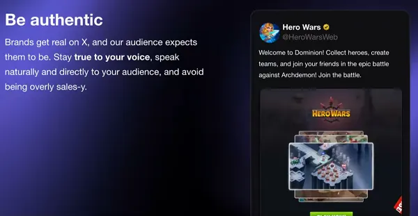 X also says that brands should maintain authenticity in their messaging, in alignment with their target audience.