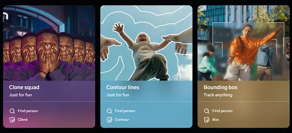 Meta’s SAM process is able to identify specific objects in a frame, which then facilitates all new editing and customization, based on each object.