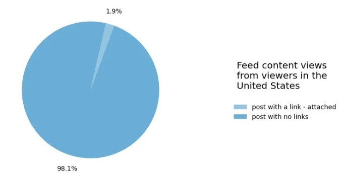 In its transparency report for Q3, Meta said that more than 98% views on the feed in the U.S. come from the posts that don’t have any links. It is not clear if this signal pushed the company to experiment with limits on link sharing, however. The company said that the majority of the 1.9% of views of posts with links came from a page they followed. Linked posts shared by friends and groups were minimal.