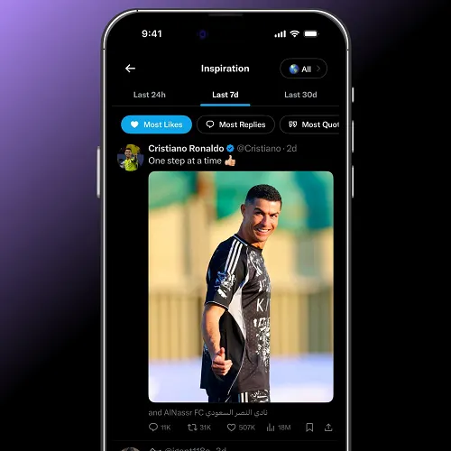 And in addition to these more common elements, X has also added a new “Inspiration” tab, within which you can check out the top-performing posts in the app, in order to get more ideas for your own content approach.