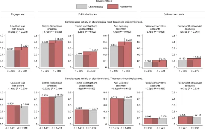 Based on this sample set, participants were measured on how they felt about key political issues before and after exposure. The results showed that those who were on the algorithmic feed leaned much further towards conservative viewpoints.