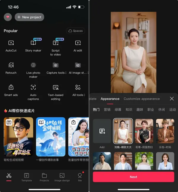 - It also has a text-to-video tool, which enables the creation of short clips in-stream (it also has a separate app called “Jimeng” for this)