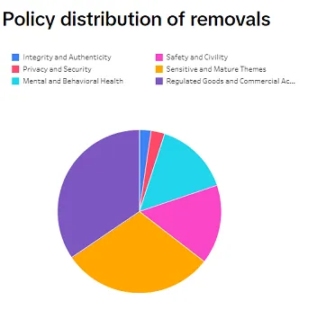 In terms of specifics, TikTok reported that content promoting regulated goods, or including sensitive and mature themes, were the main reasons for removals in the period.